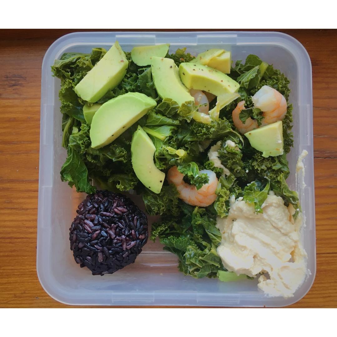 Superfood Salad! Kale,Avocado,Shrimp,Reduced Fat Houmous,Tri...