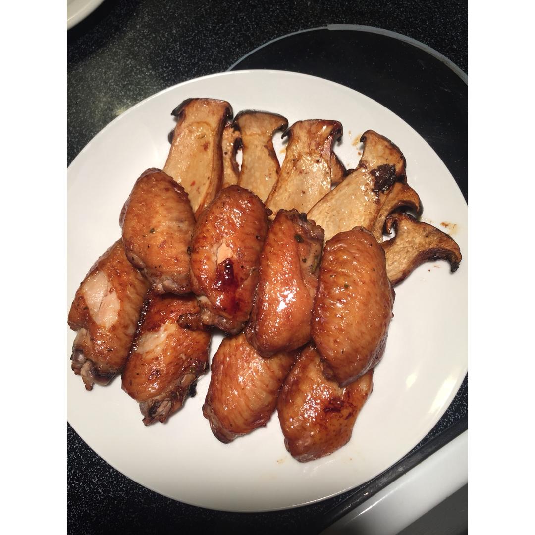 烤杏鲍菇鸡翅,蔓越莓炖排骨,华人超市买的大豆苗,番茄蛋汤.