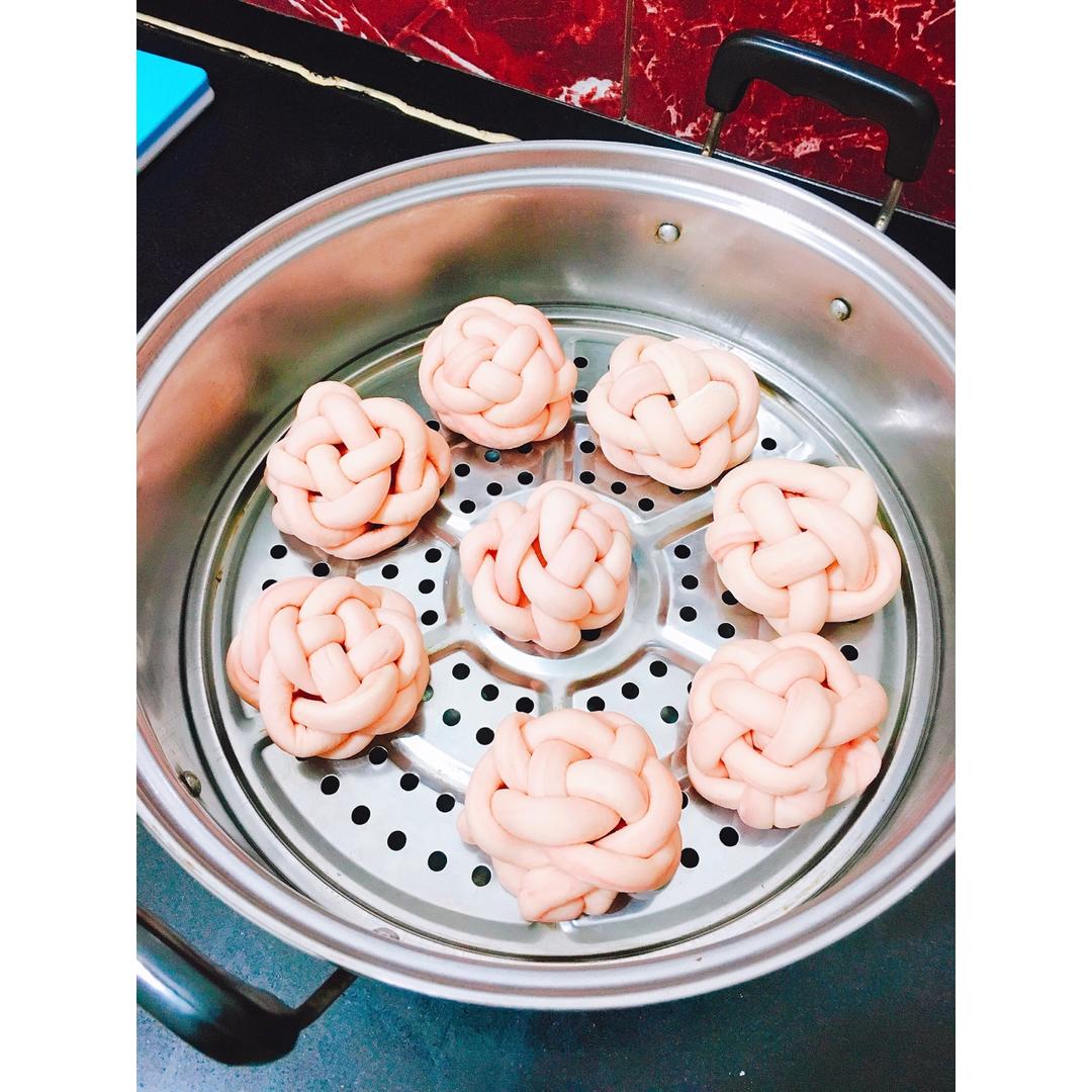 樱花绣球馒头~美腻的颜色超适合过年的气氛呐!编绣球慢慢的就上手了呢 放了少量的红曲粉 一定要少量才能呈现少女粉呢!明天早...