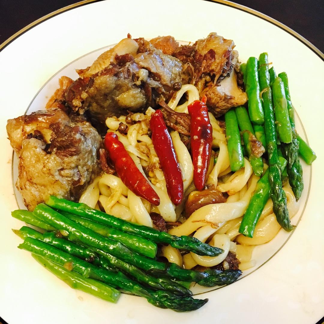 原来用挂面也可以做焖面呐!!先把挂面稍稍煮软 捞出来拌一点橄榄油 然后其他步骤就都一样啦!神奇~