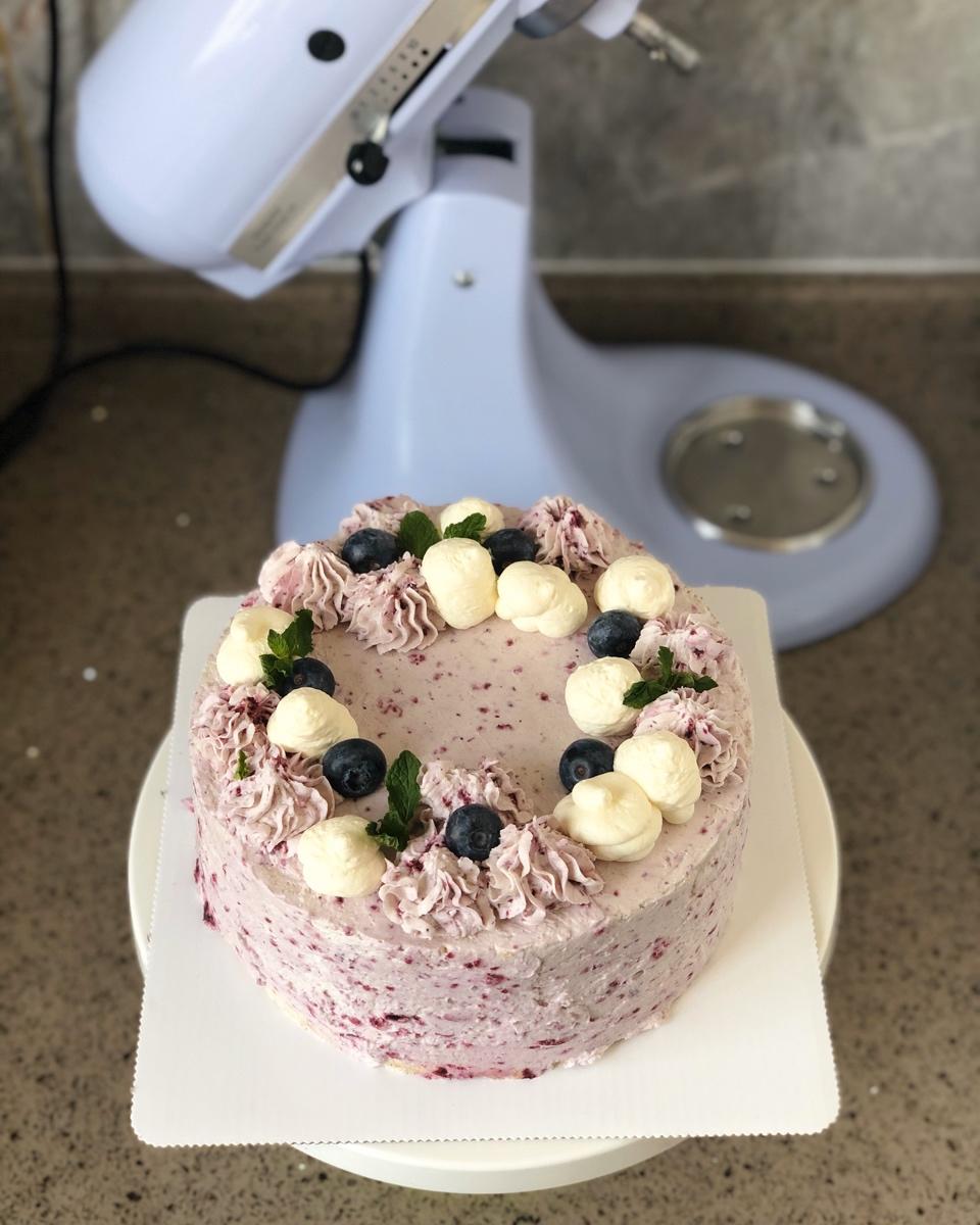 超常发挥的奶油蛋糕,做了八寸和六寸两个蛋糕。颜值太高了,配方棒棒棒!我自己奶油有点打过头了,特别是加了蓝莓酱的那部分奶油...