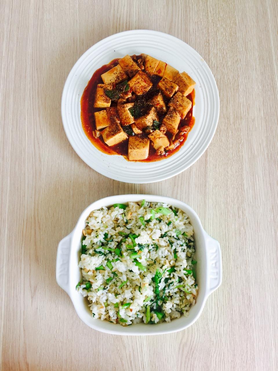 53#麻婆豆腐、炸蒜茼蒿炒饭