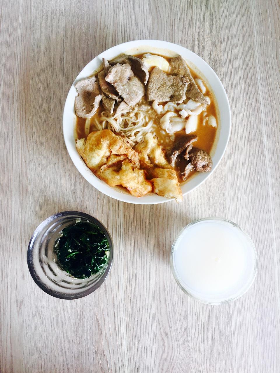 54#沙茶面、凉拌野菜、养乐多苏打
