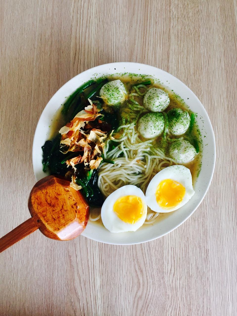 60#菠菜味噌拉面、鱼丸、溏心蛋