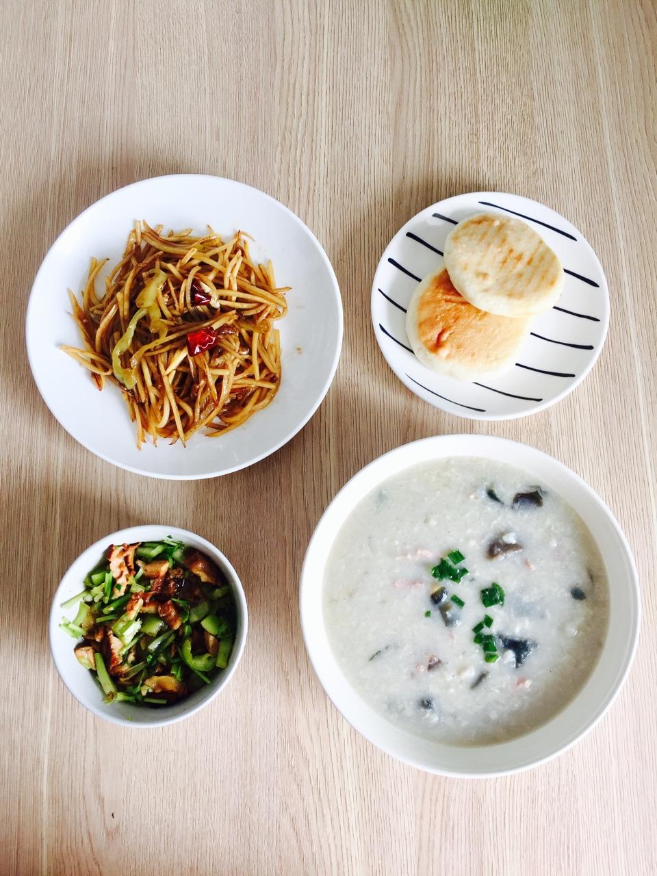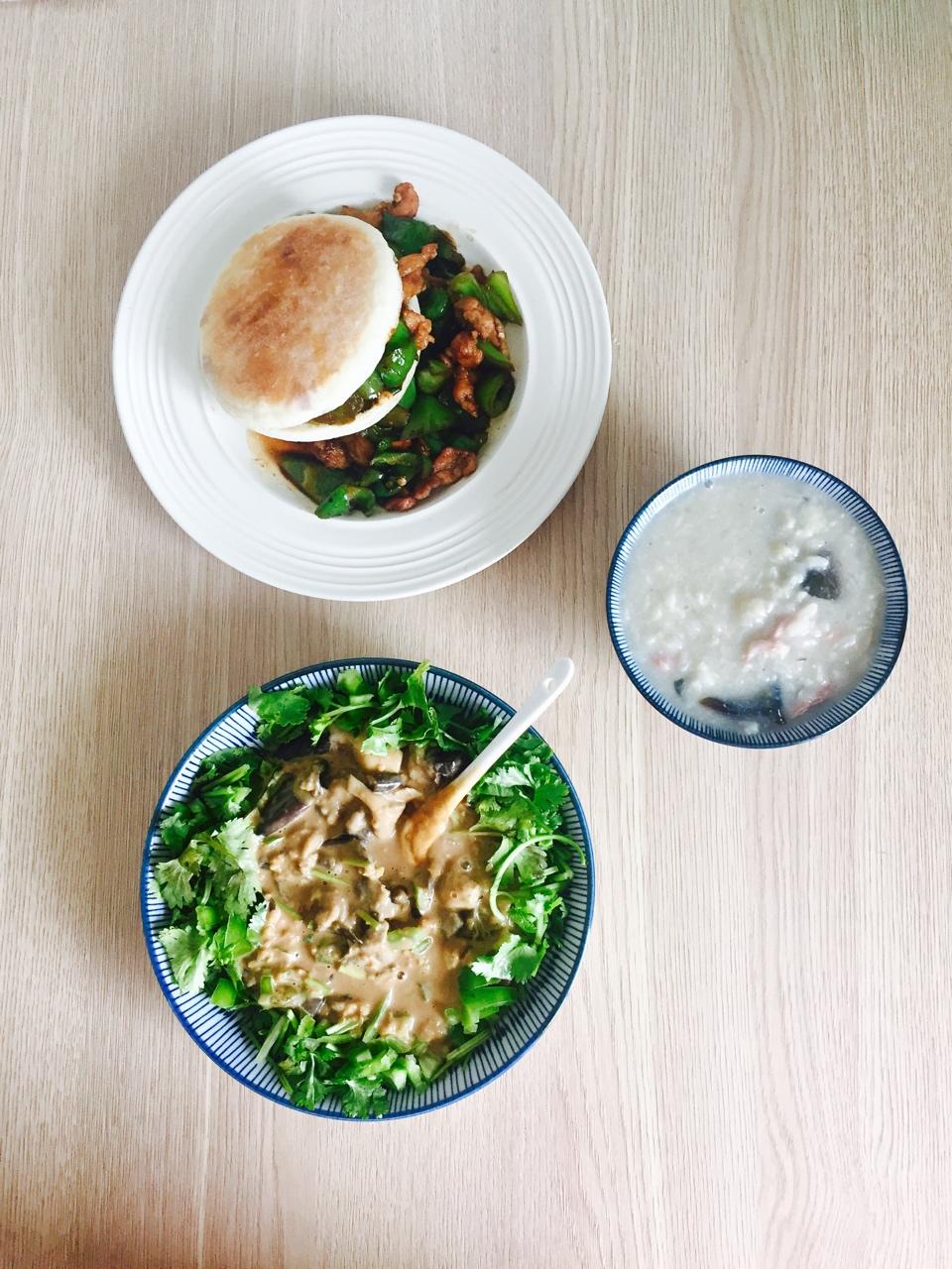 56#肉夹馍、炝炒土豆丝、皮蛋瘦肉粥