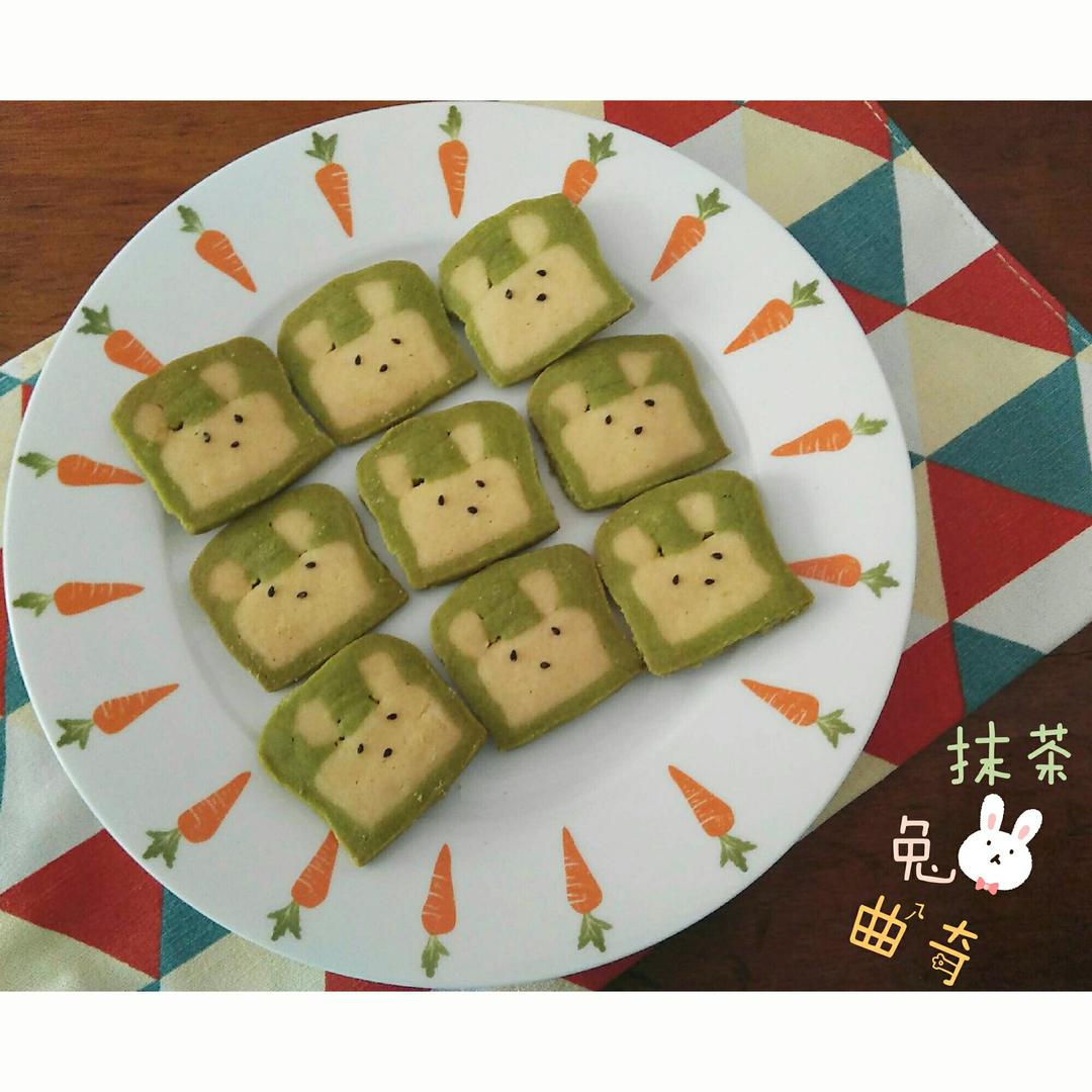 抹茶粉还不到十几天就快过期啦,赶紧把它做成曲奇之类的,最后做出了脸方了的兔子,哈哈^O^