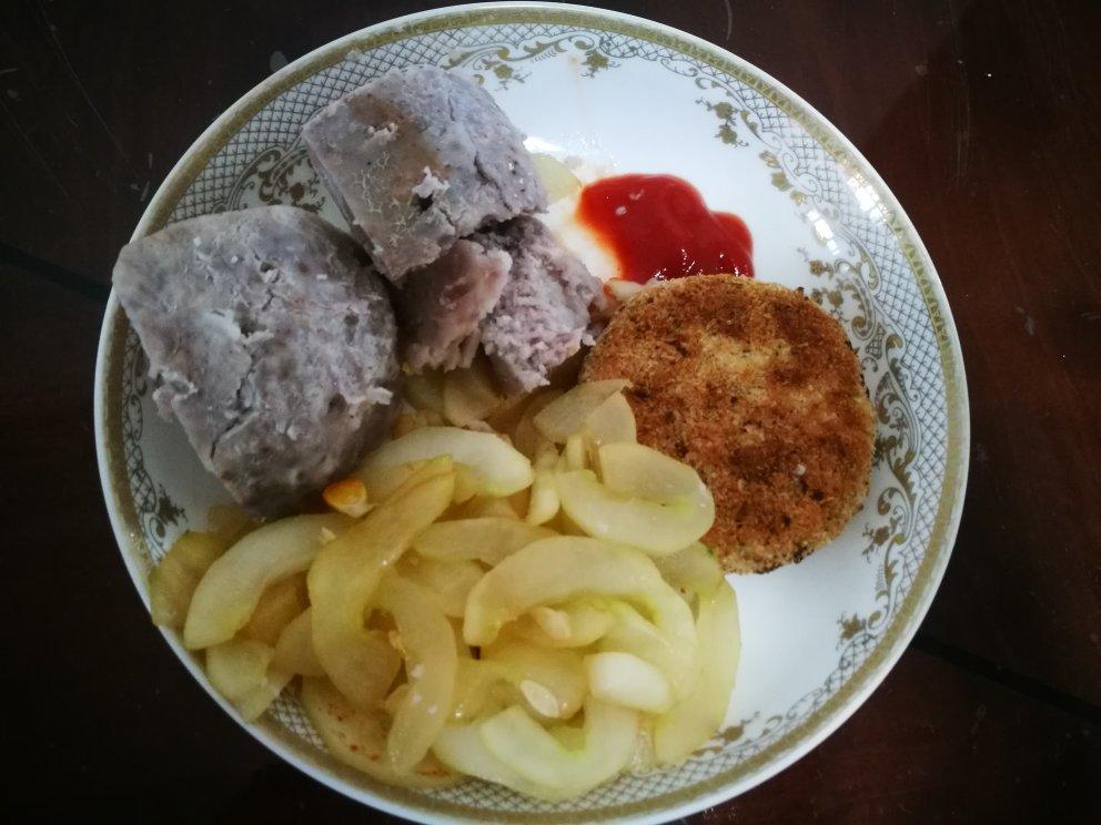 蒸芋头 鸡胸肉饼 炒菜瓜
