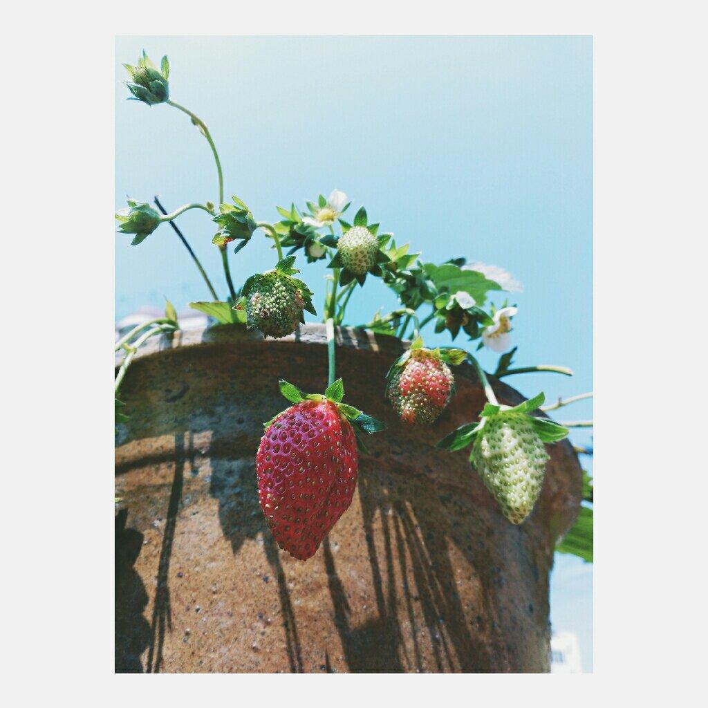 我家的草莓熟了一颗啦😊
