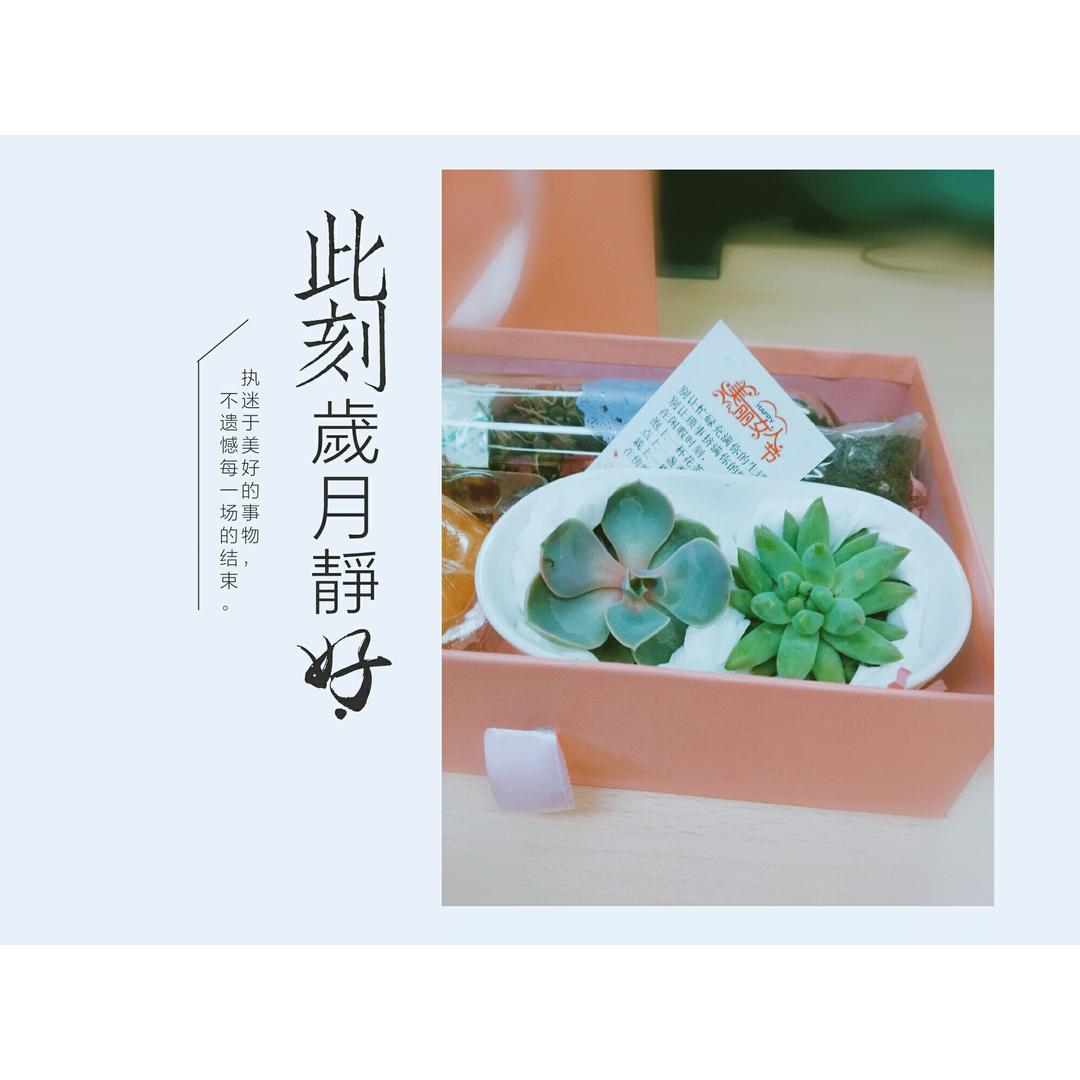 女神节公司送的礼盒,包括两个多肉,一个手工皂,一瓶玫...