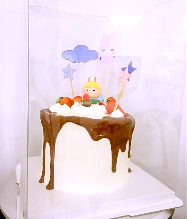 水果奶油蛋糕,第一层夹果酱,第二层夹布丁,太好吃了!