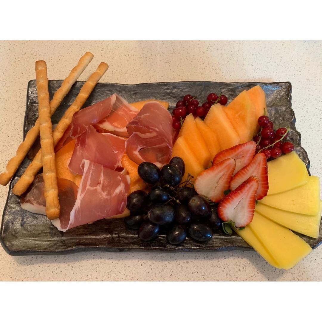 西式晚餐 来一个前菜 黑毛猪加哈密瓜 (黑毛猪片是真空包装)