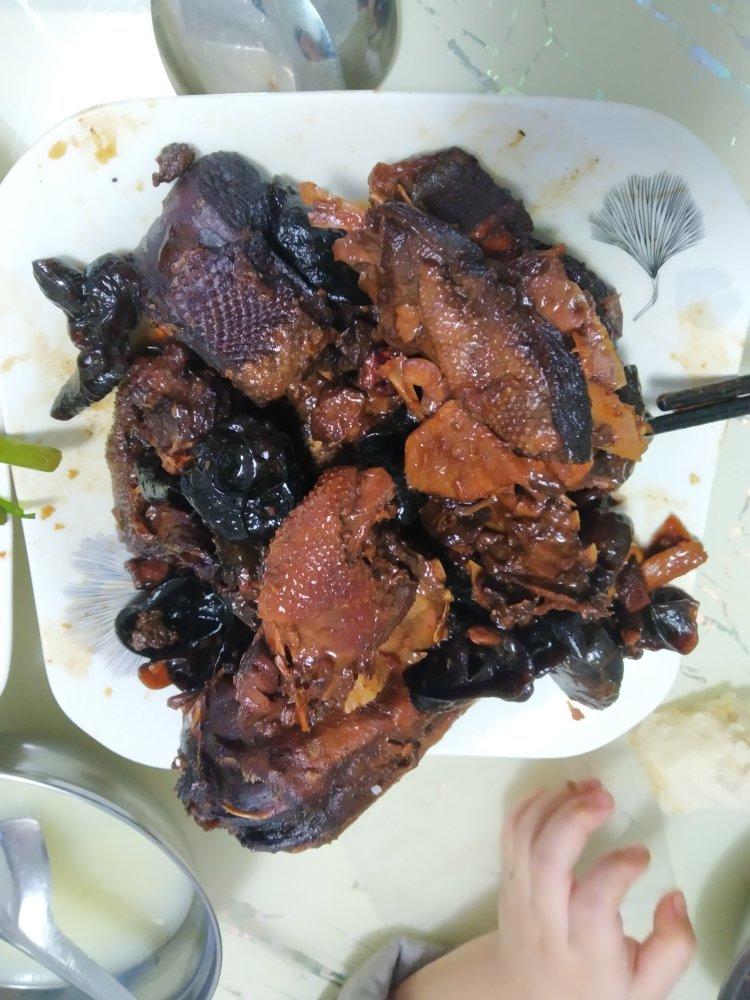 阿姨送了半只鹅,从来没做过。学着做了一下没有放辣椒,青椒,香菜等,所以一团黑。味道还行吧,香菇味道有些重。