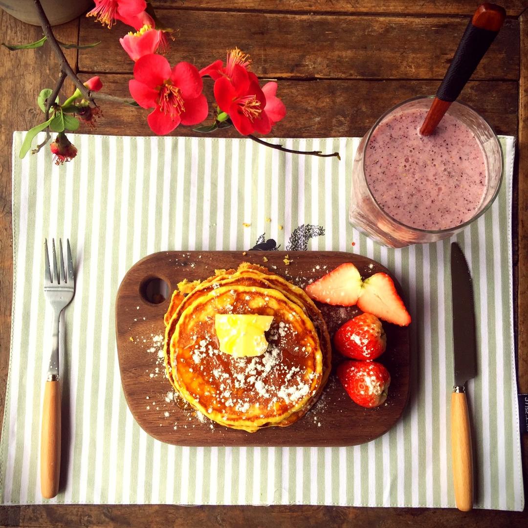 蜂蜜松饼+火龙猕猴汁