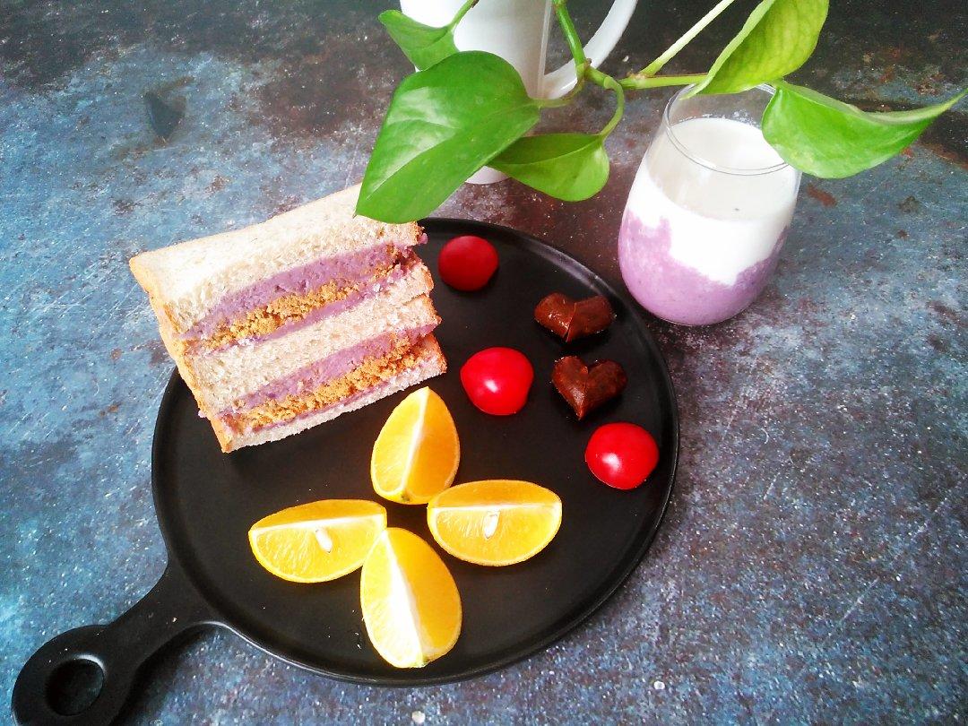 紫薯粥*红薯心里美馒头*酸辣萝卜片*水果