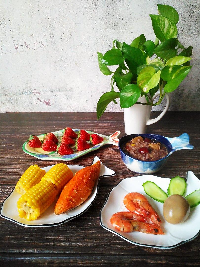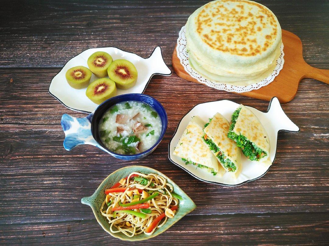 燕麦小米红薯粥*韭菜鸡蛋塌菜饼*水果