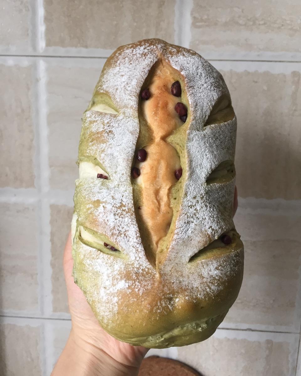 抹茶红豆馅软欧包