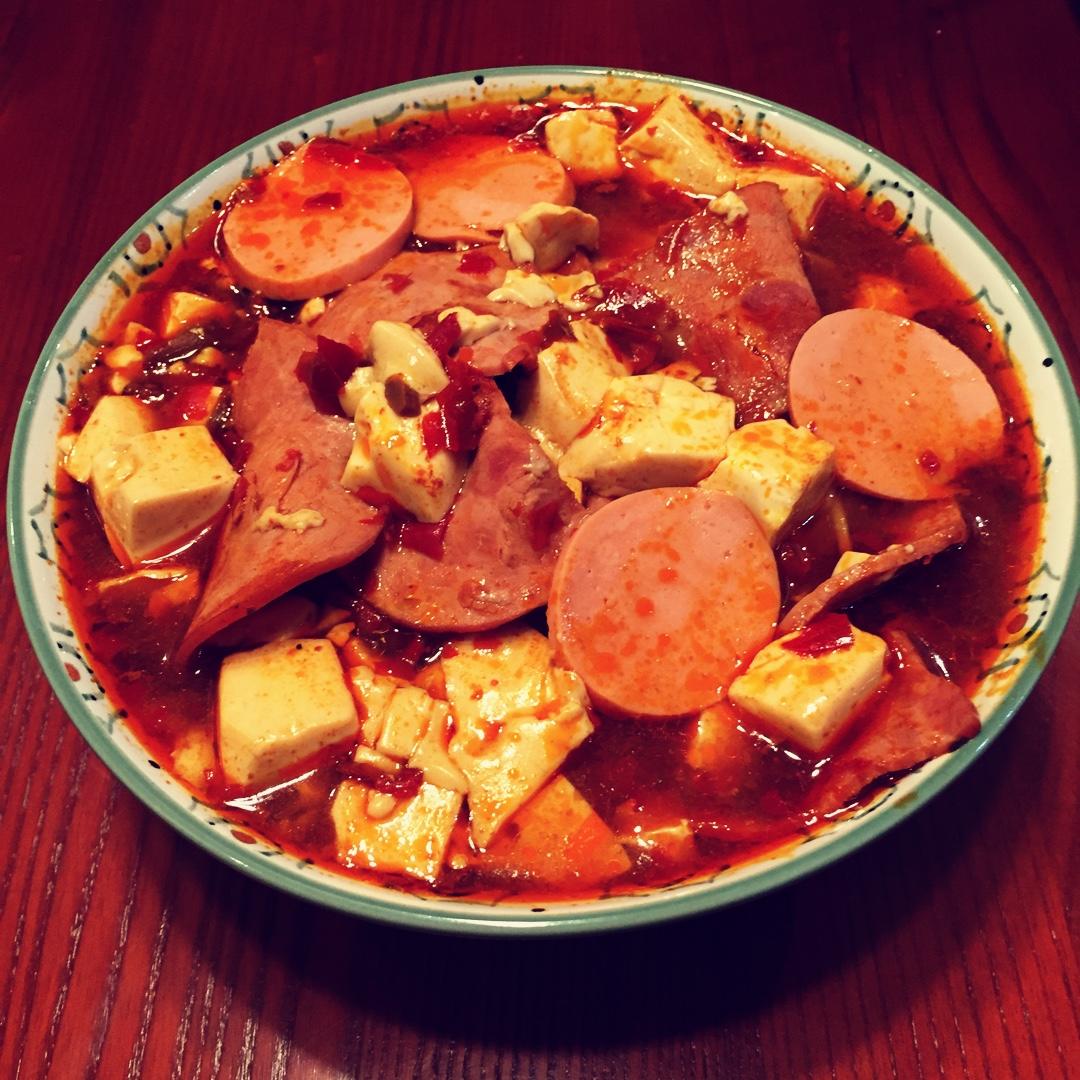 麻婆豆腐火腿培根面,乱炖