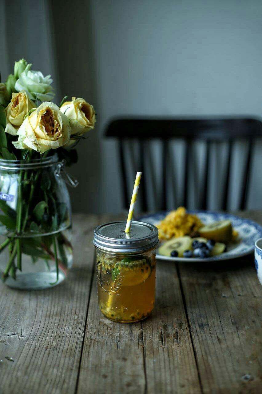 柠檬百香果茶,腌了好多罐百香果蜜,夏天最爱,泡柠檬茶...