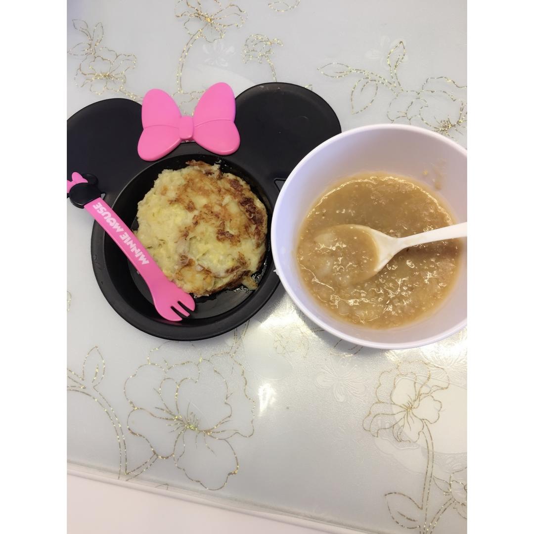 香蕉鸡蛋饼,山药枣泥藜麦小米粥