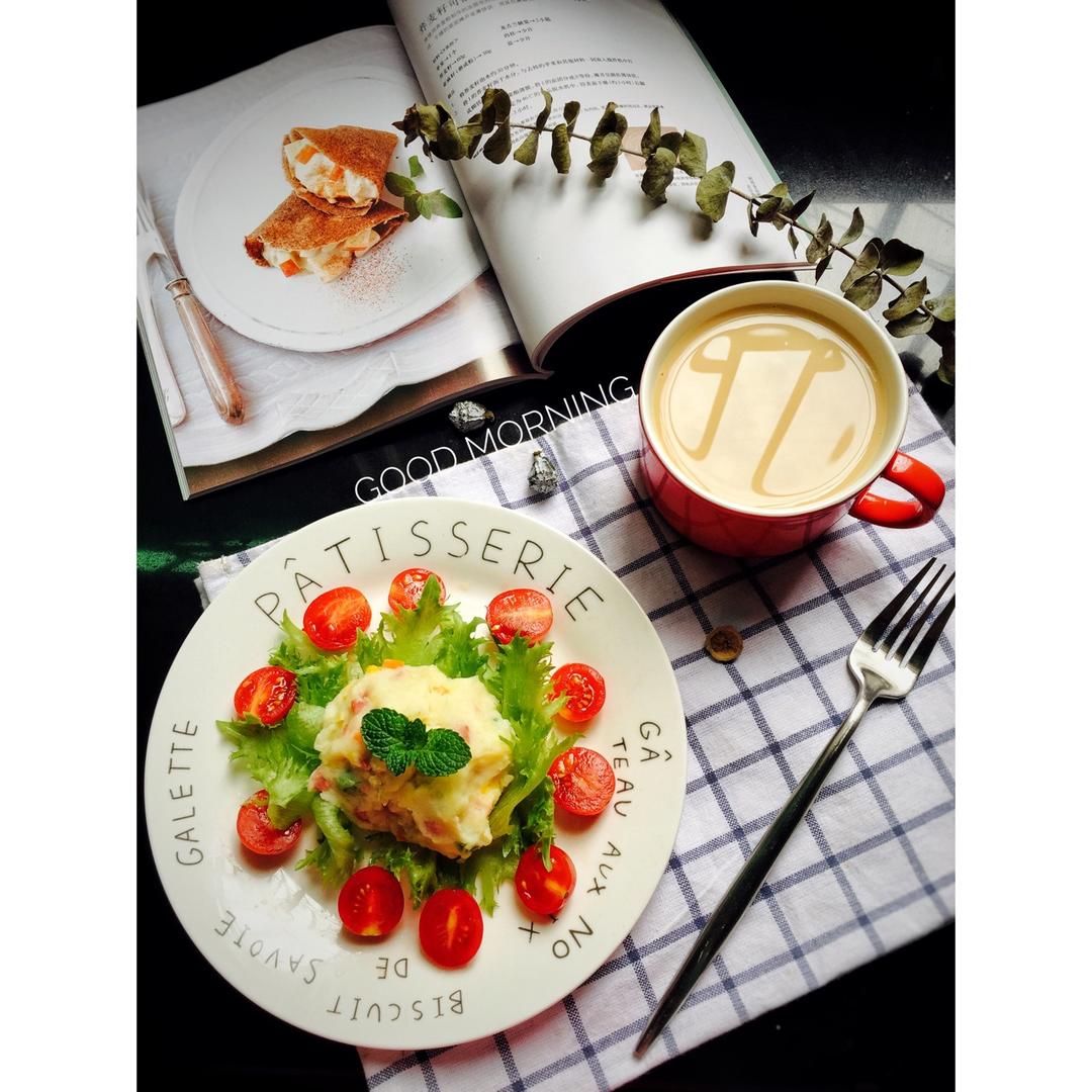 土豆泥沙拉➕牛奶咖啡