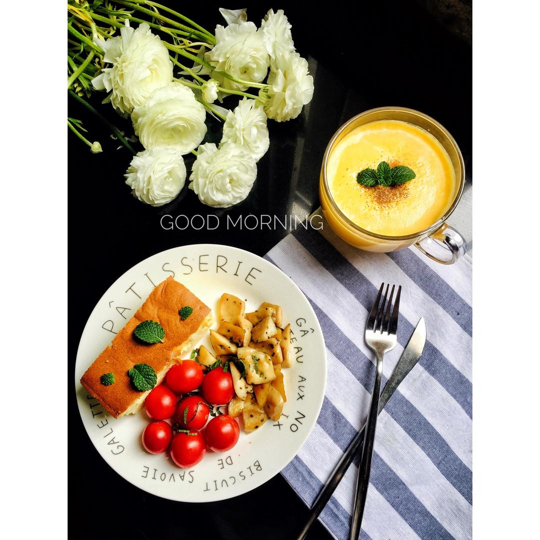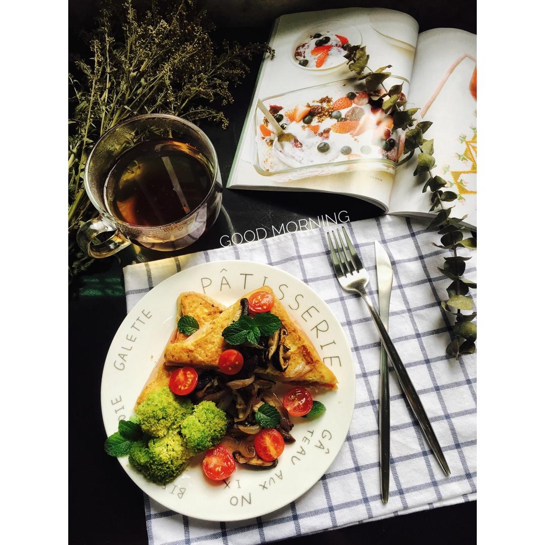 法式西多士➕素炒香菇➕西兰花➕黑糖姜茶