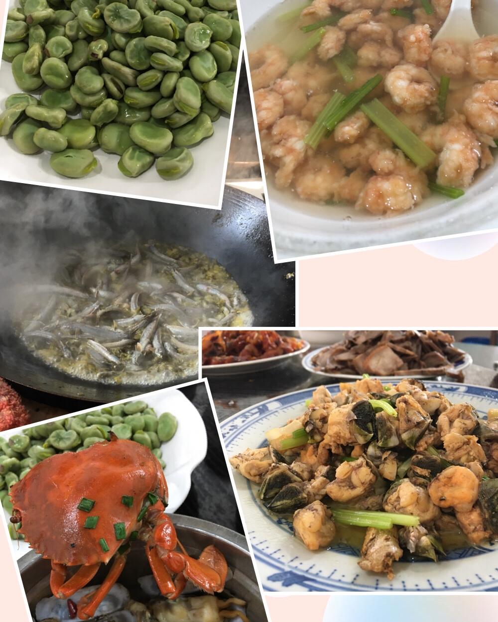 在浙江玉环一个临海小山村里吃朋友自己做的特色菜。清煮鲜蚕豆,清炖跳跳鱼(好贵哦),虾仁🍤汤(土豪哦),香煎马鲛鱼,玉环小...