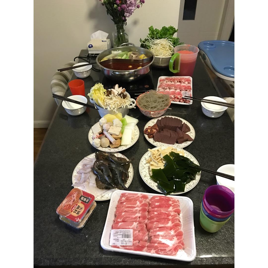 中午准备一桌邀上两家邻居,边涮边聊天好惬意!阴雨天跟火锅最配哦