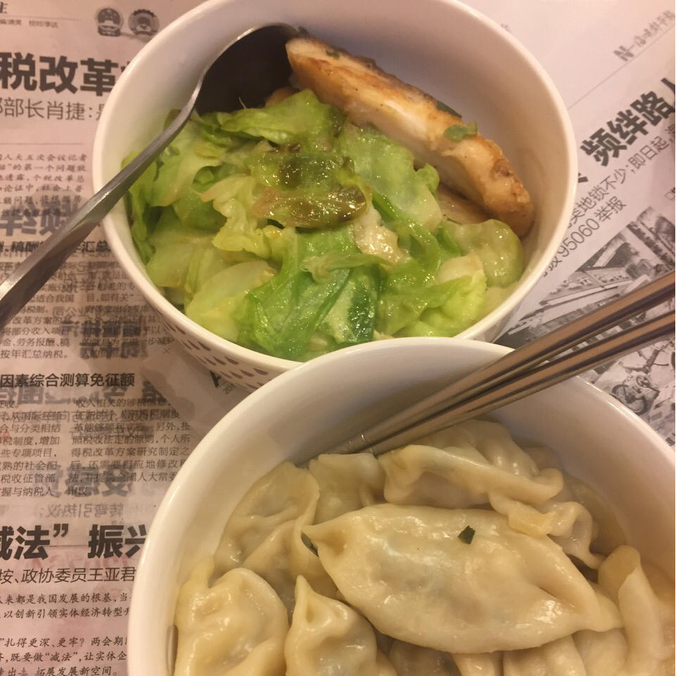 蒸饺 手撕包菜 煎鱼片