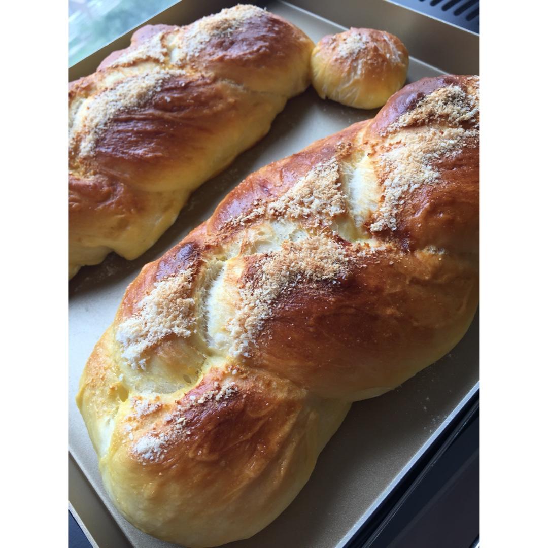 好久没捣鼓了,今天用面包机和面,做了两条"辫子"🤗