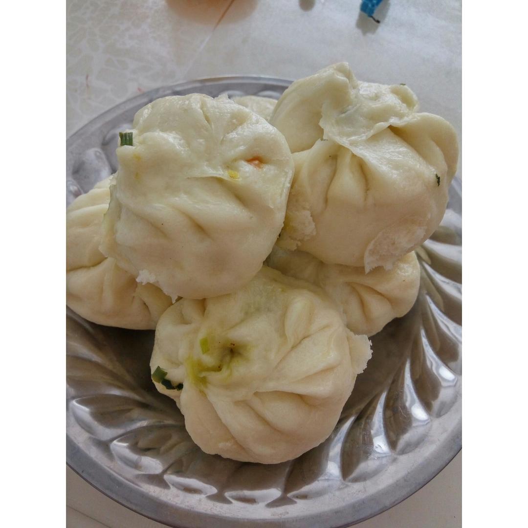 韭菜包子,好吃,吃了四个,第二次用酵母发面,比第一次稍微好点,但还是有股酸味,加了一点点碱...