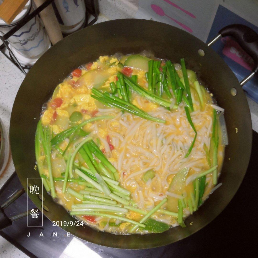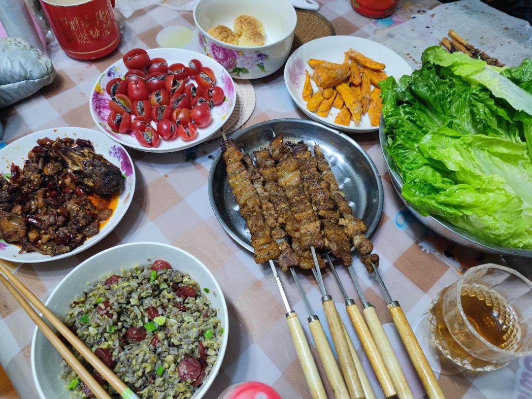 回家采摘的自然熟小番茄🍅,绿色无公害黄瓜🥒和韭菜,粮食喂养土鸡蛋🥚,健康美味无疑了✧٩(ˊωˋ*)و✧#一房两人三餐四季...