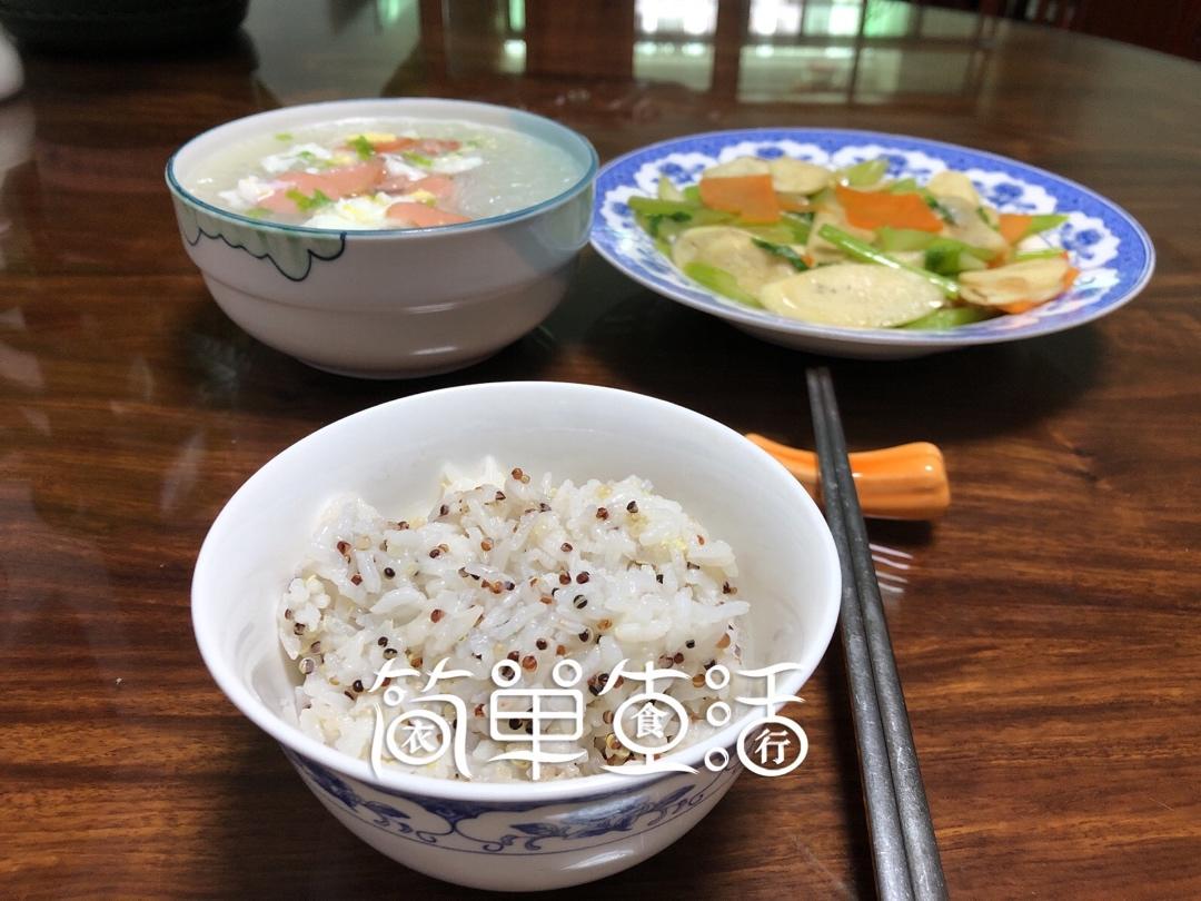 日常烟火气:藜麦饭,鸡蛋粉丝汤,禾笋炒西芹