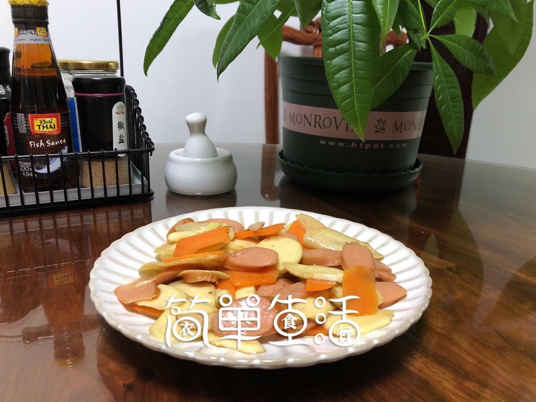 藜麦饭,青椒丝芹菜炒鸡蛋丝,脆皮肠炒禾笋,小苹果1个