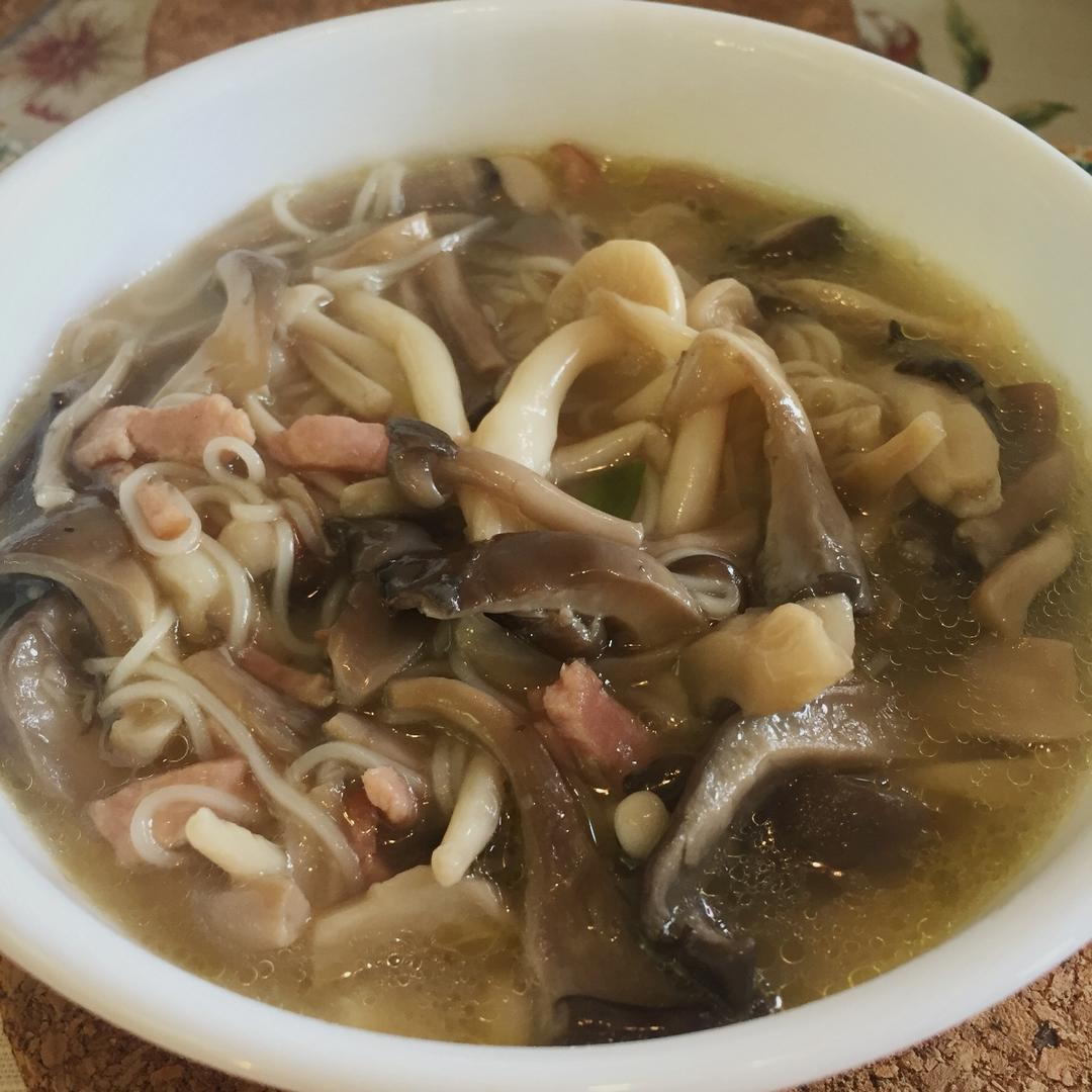 什锦蘑菇面线,加了四种蘑菇和培根,热乎乎吃一碗