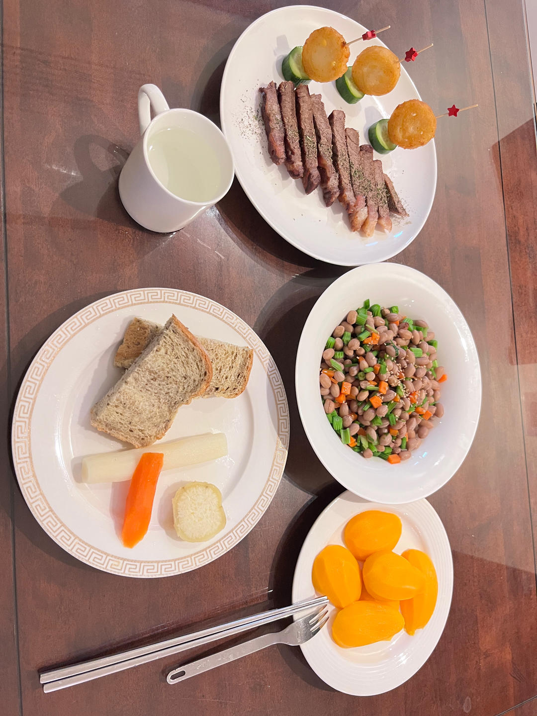 #早餐·3月24日# 苏子面包 凉拌芹菜花生米 煎牛排 台芒