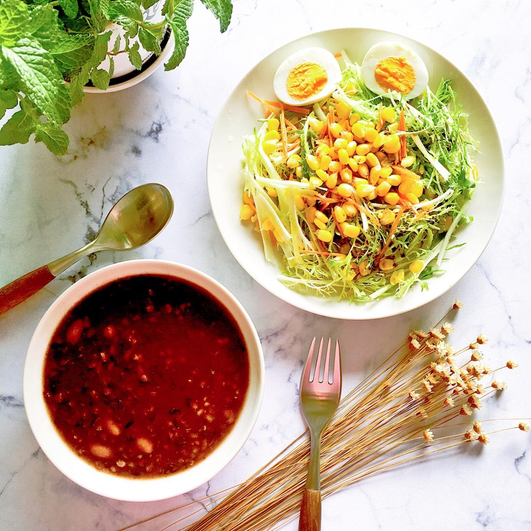 打卡第20天的早餐:青团(甜咸两种口味。话说青团做好了放冷冻,想吃的时候就蒸几个吃,真是超方便啊!),蔬菜沙拉,打了一个...