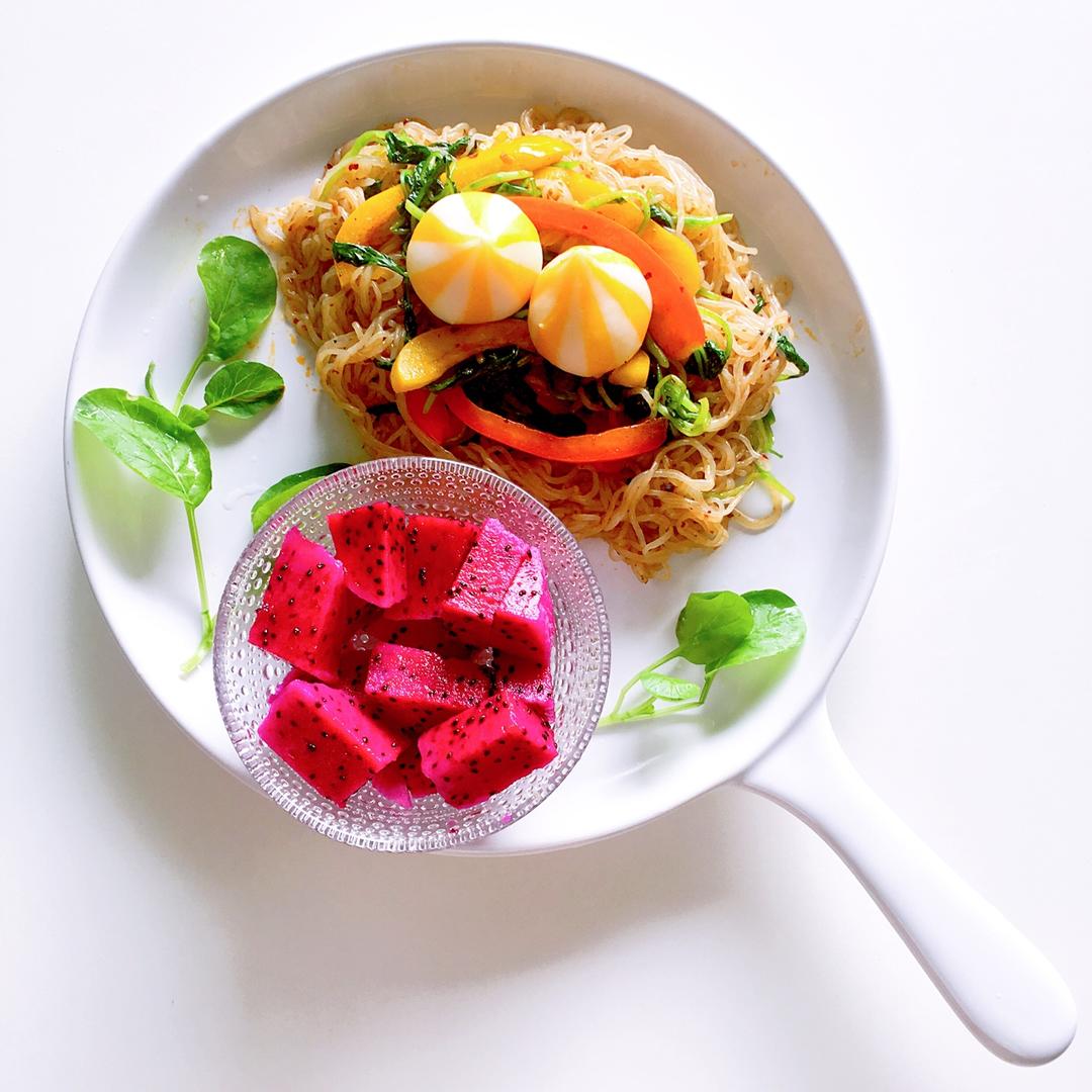 辣拌魔芋粉丝和红肉火龙果。天啊,送的辣酱好辣,幸亏我只放了一半啊!and,终于快冲刺了真高兴啊! #早餐•2017年5月...