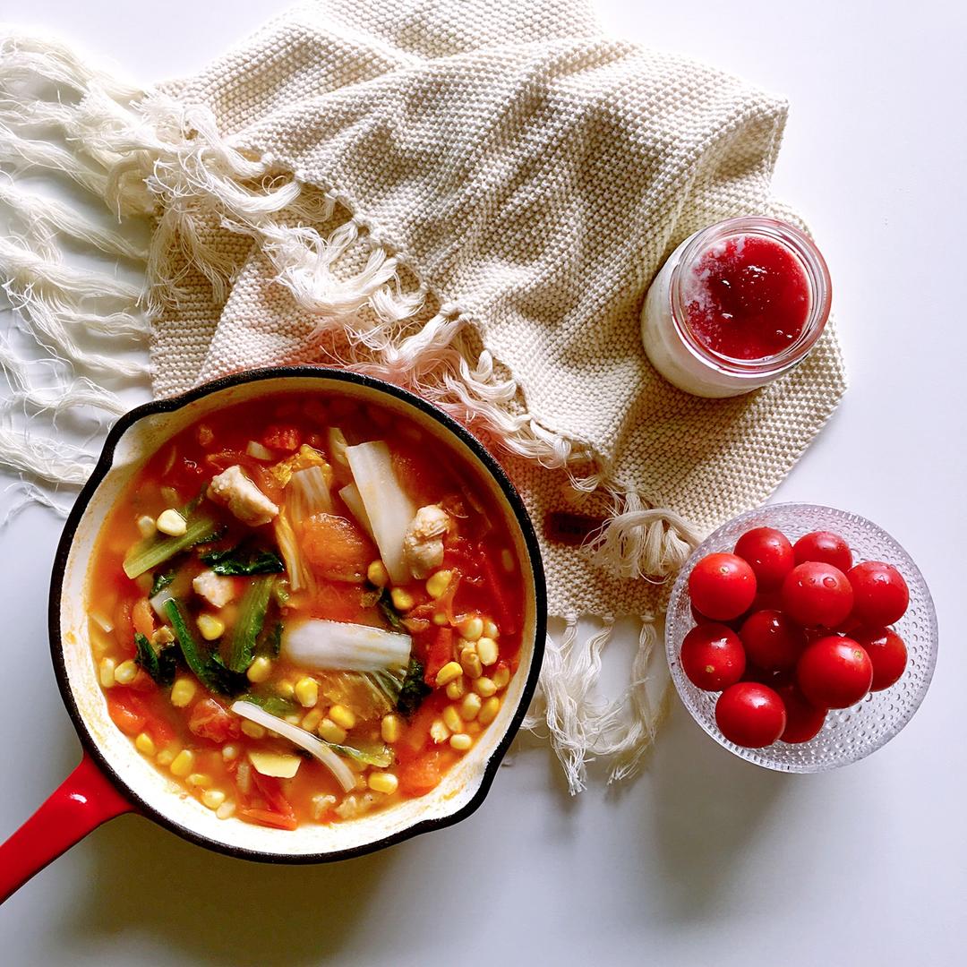 周日愉快🌹又到我的一周豪华早餐时间了😊😊水煮蛋,土豆丝煎饼配番茄酱,全麦面包配希腊酸奶和草莓酱,樱桃番茄,小米粥,全都吃...