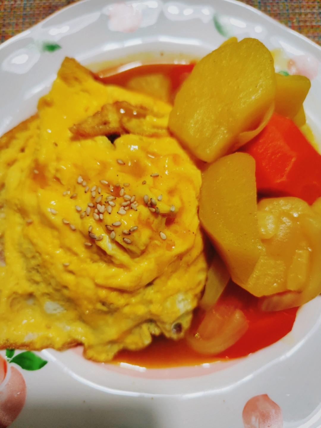家里最后一份咖喱,这个旋风鸡蛋是不是煎的很漂亮?😏