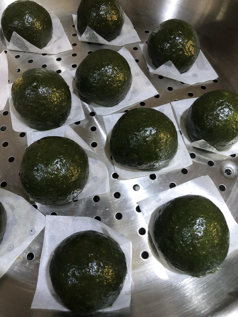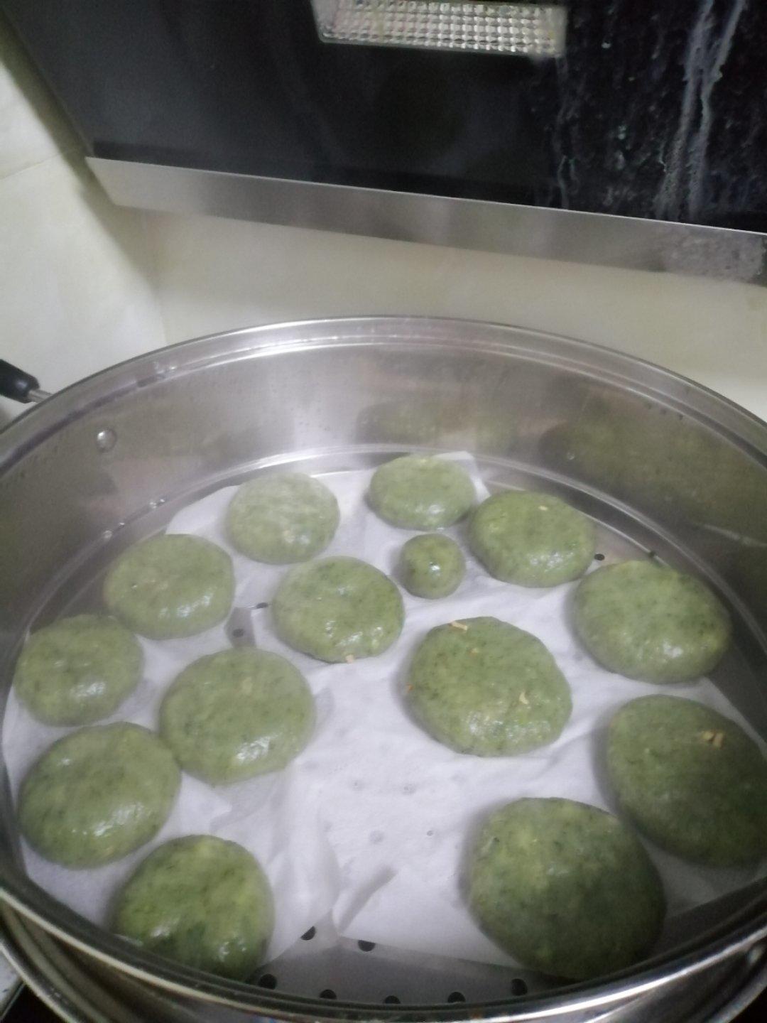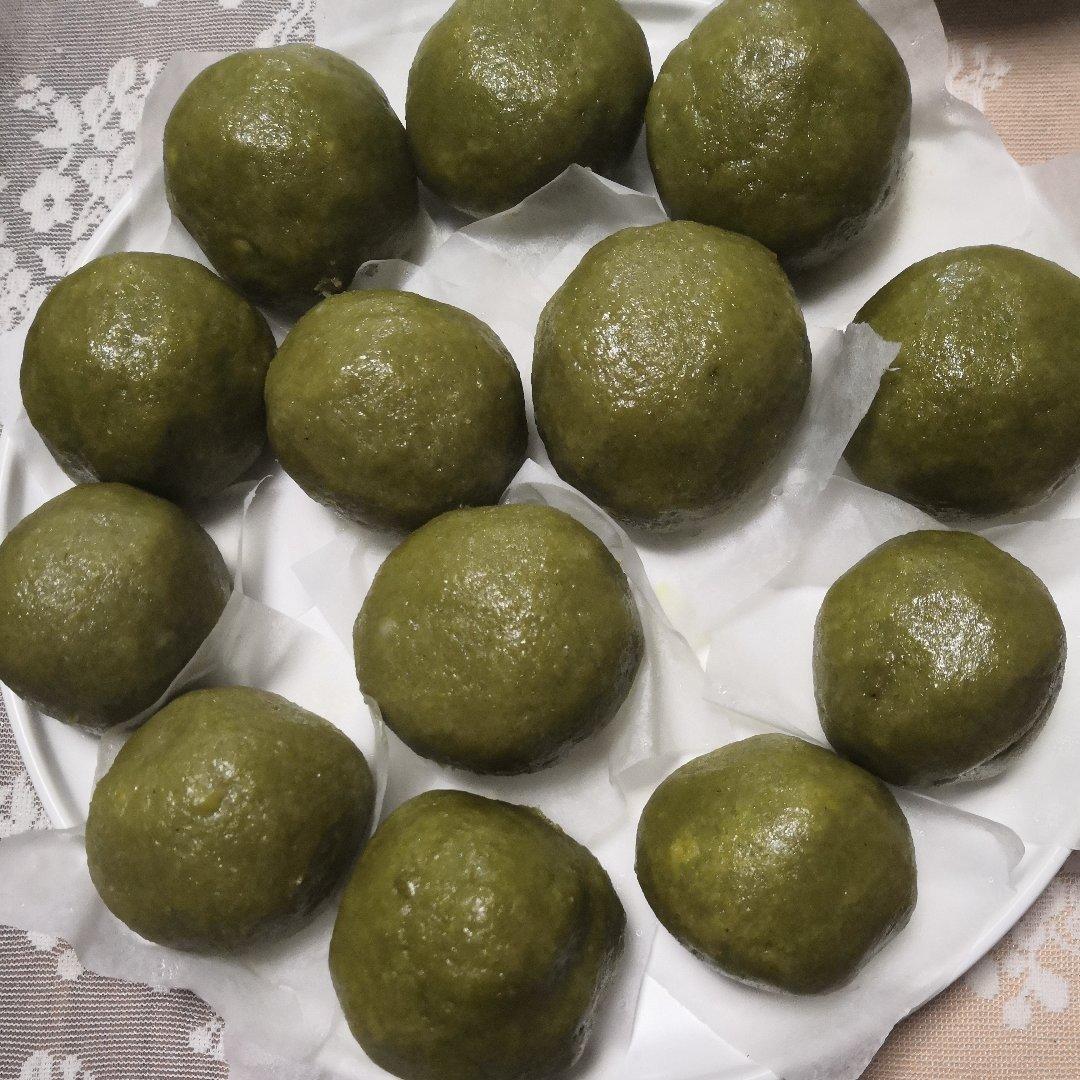 第二次做艾团,艾草是田艾,也叫棉艾,面皮里加了猪油后颜色确实更绿一些,