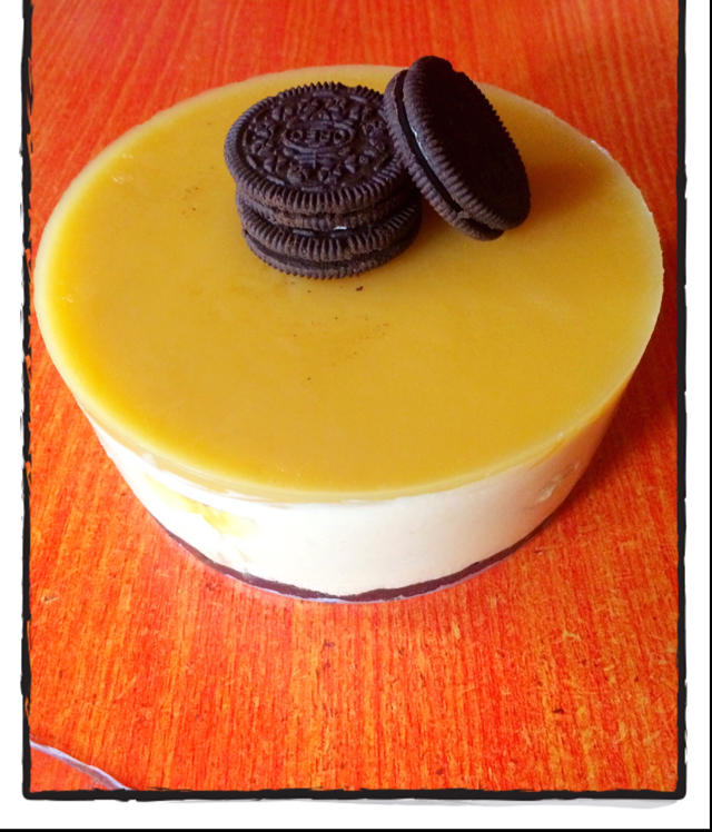 家里芒果不够加了苹果和香蕉凑数,混合味儿慕斯蛋糕