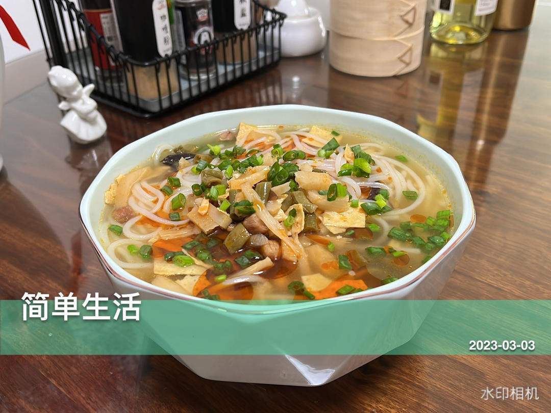 加了青菜、葱花,看着就有食欲,粉滑汤辣够味。