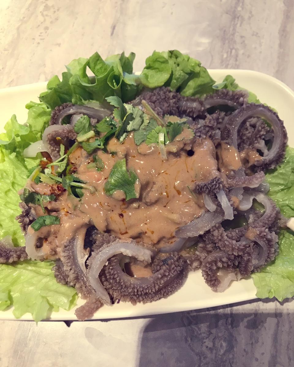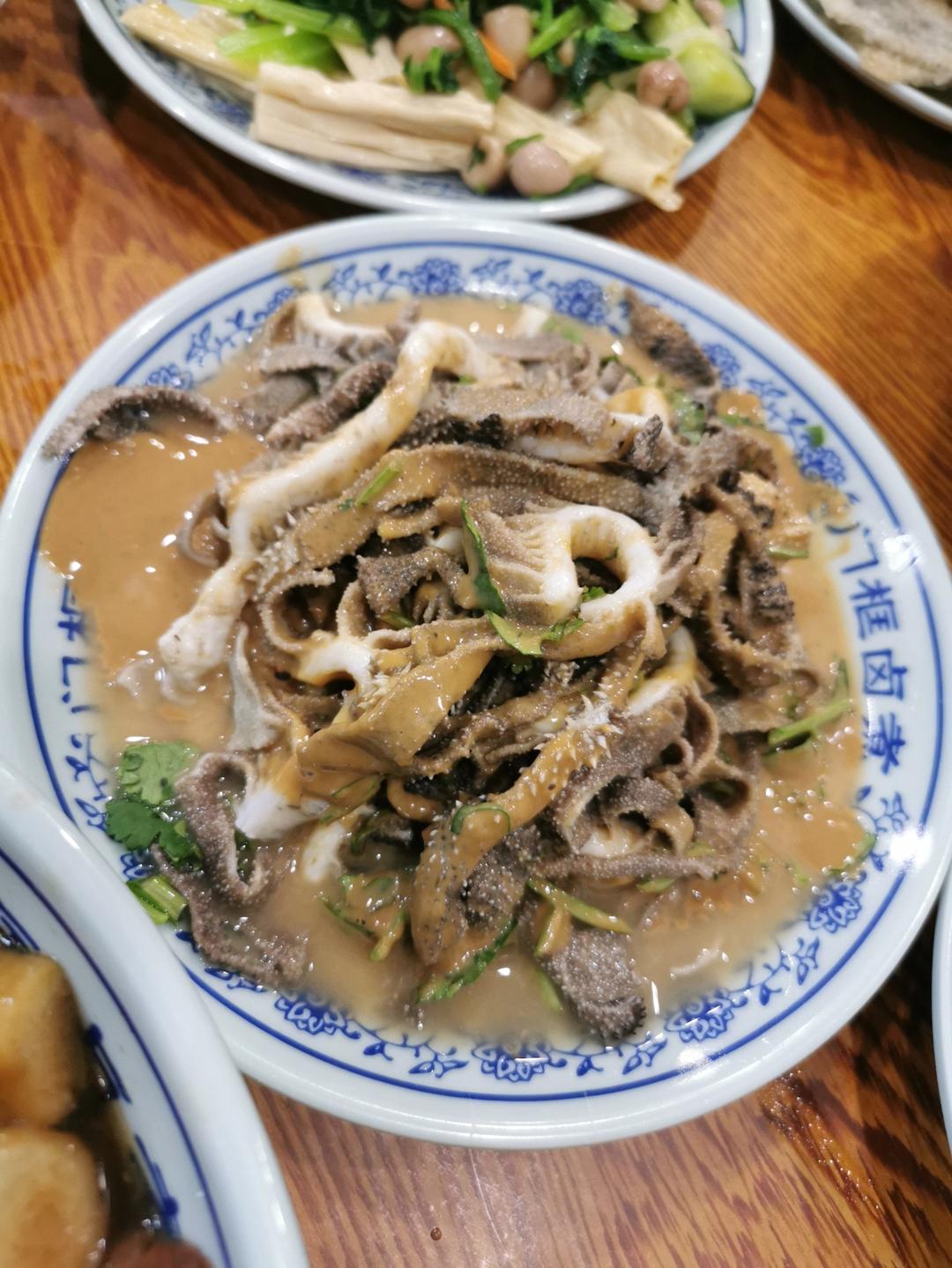 百年老店的爆肚 说实话没我自己做的好吃哈哈 百叶是脆的 但是白色的部分没煮熟 很绵