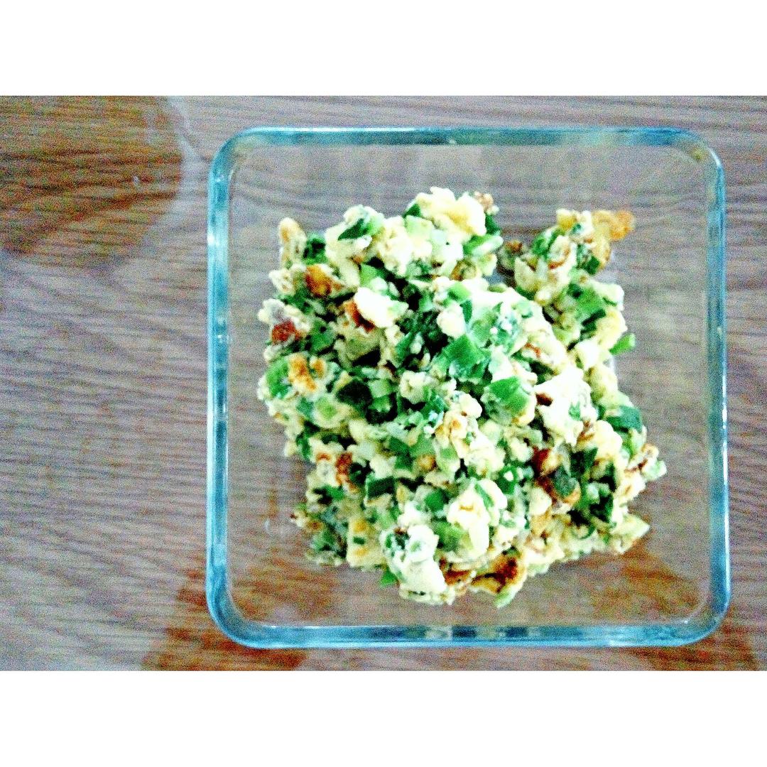 想做成蛋饼,结果火太大饼太厚,底下焦了上面没熟,就炒散了