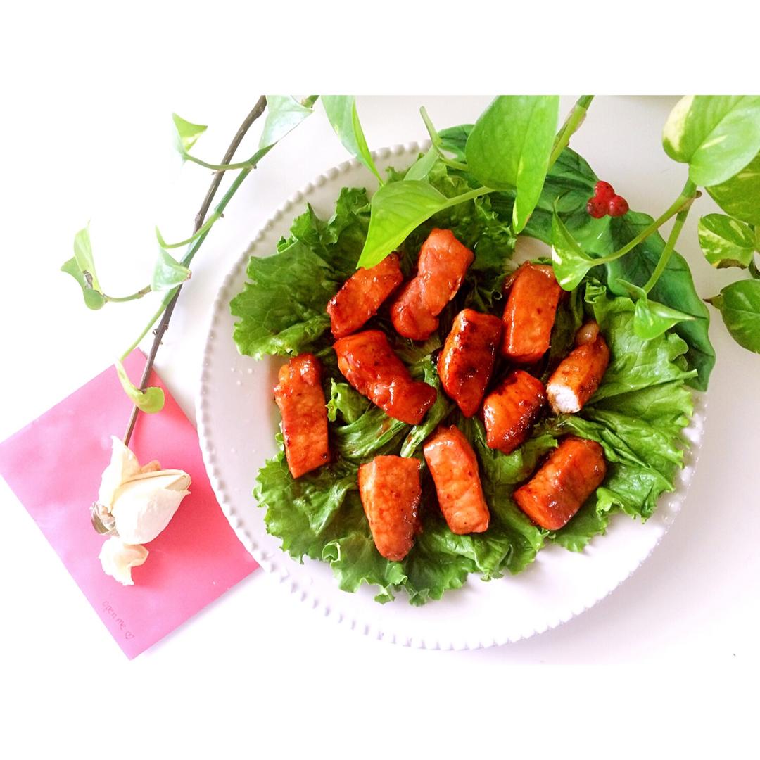 之前用烤箱做过一次,特别干。这次用电饭煲做了一次果真肉很嫩而且也上色了~