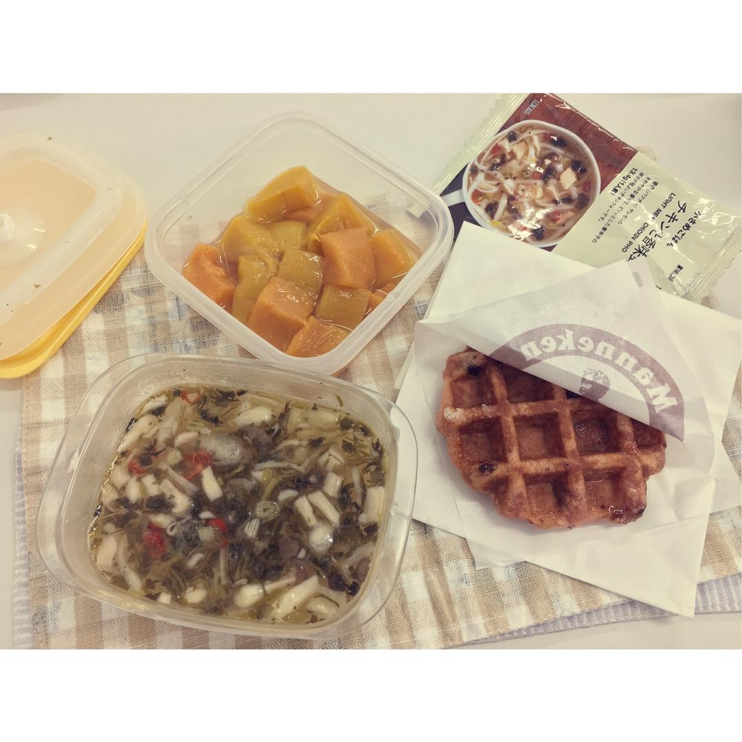 【muji即食鸡肉粉+草莓果实华夫饼+解冻芒果】