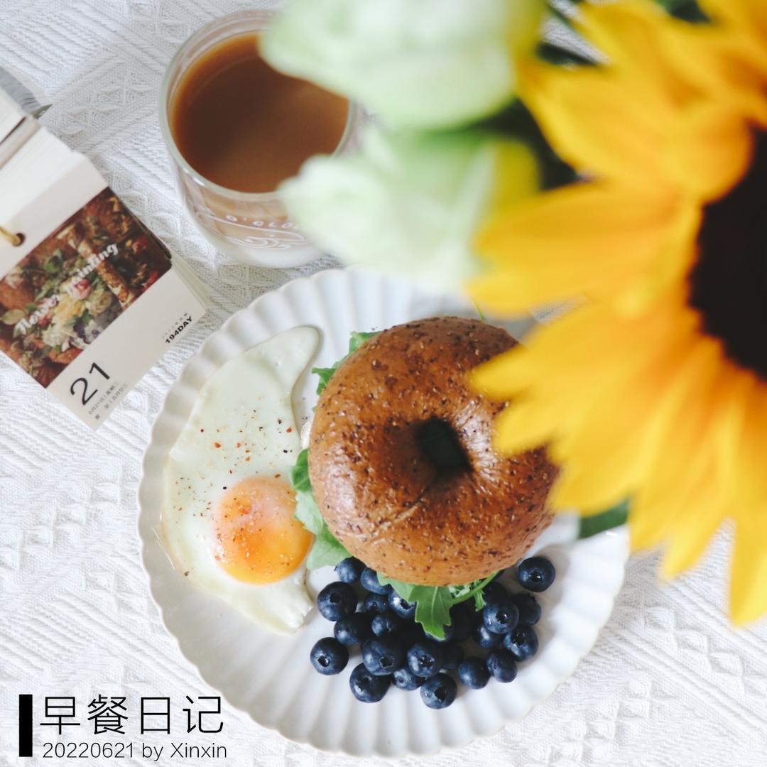 0621:贝果三明治、煎蛋、蓝莓,都是最爱,哦还有用挂耳做出分层的奶...