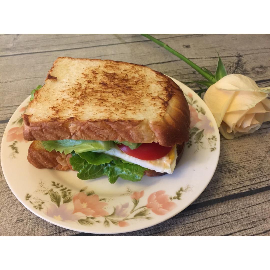 煎蛋三明治,自己吃没敢加奶酪,挤了点番茄酱和丘比芝麻沙拉汁,美味!