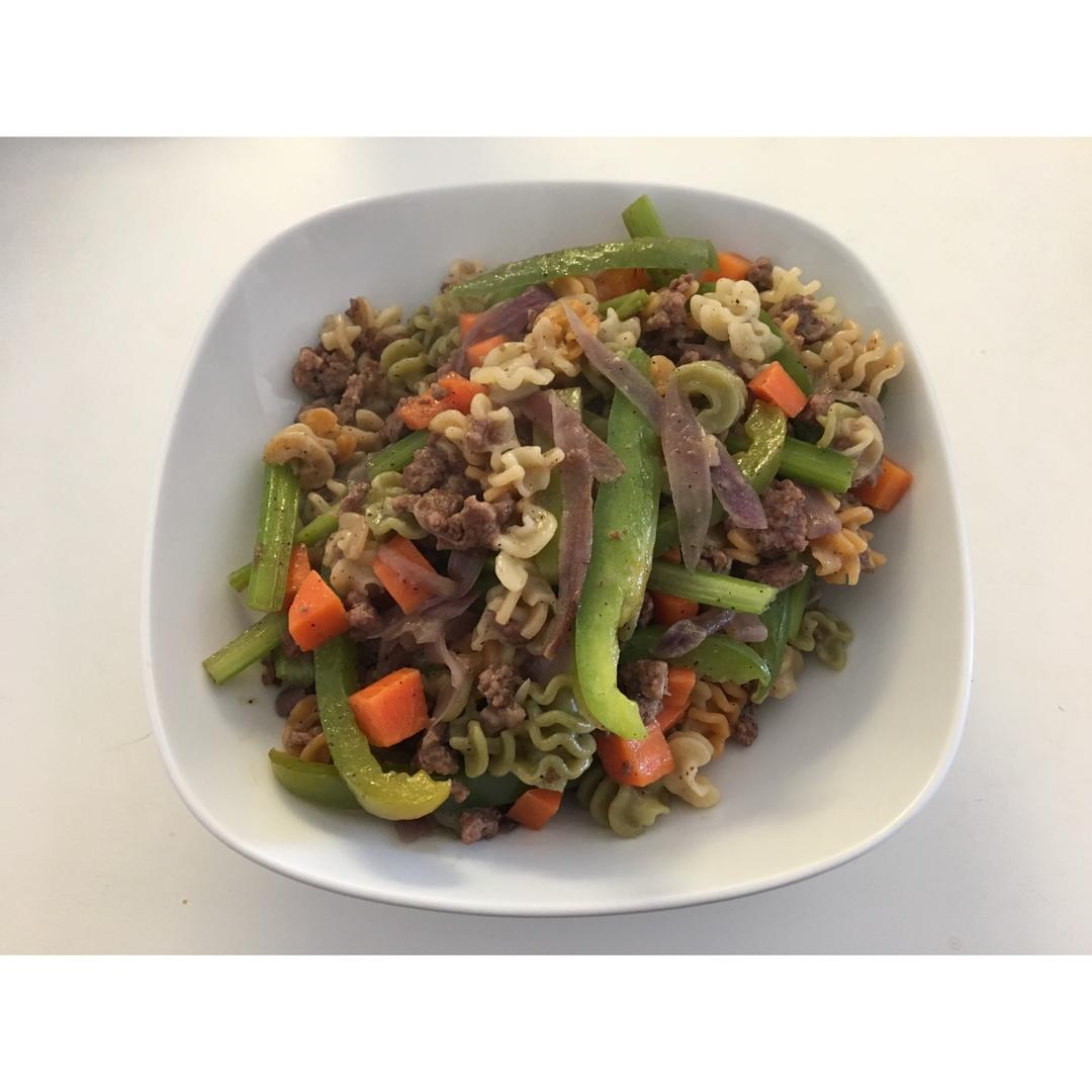 从学校farmer's market拿芹菜和青椒😂😂😂拿了超级多,就煮了意面,多吃菜💪 #午餐•2017年4月1...