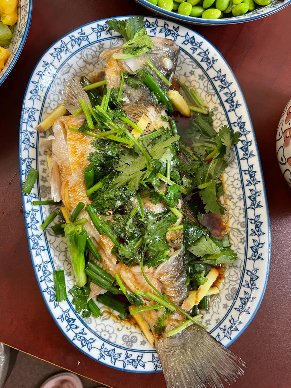 第一次做蒸鲈鱼,十分好吃,😁